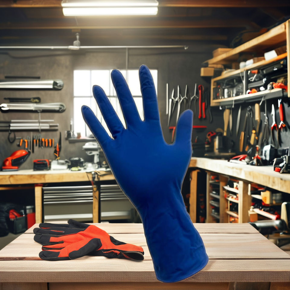 Guantes de Látex sin Polvo Azul Oscuro de Alta Resistencia de 13 g, Puño Extendido de 300 mm, Protección Superior, Buena Calidad