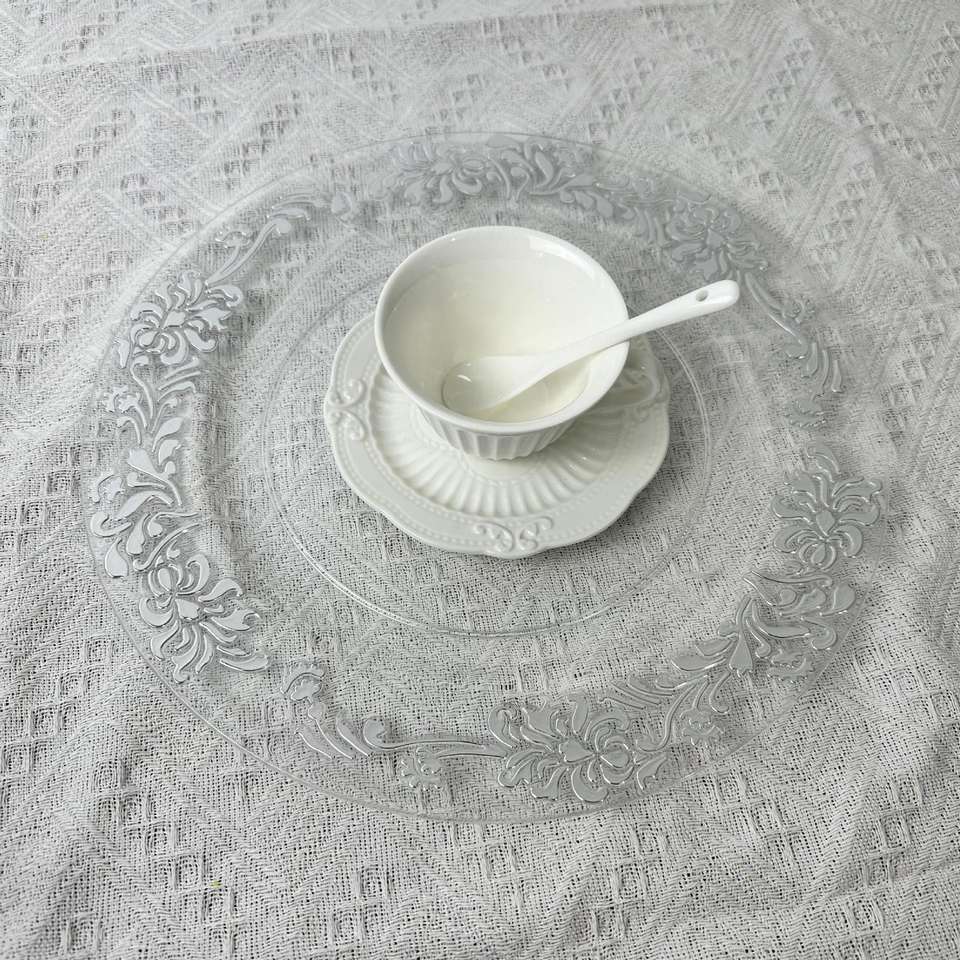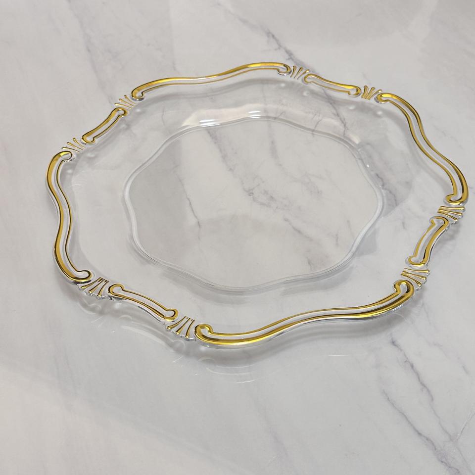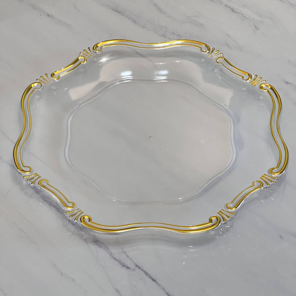Placa de carga dorada con volantes redondos de plástico de 13 pulgadas PARA CENA con diseño de arrecife Flora para decoración de fiesta de boda