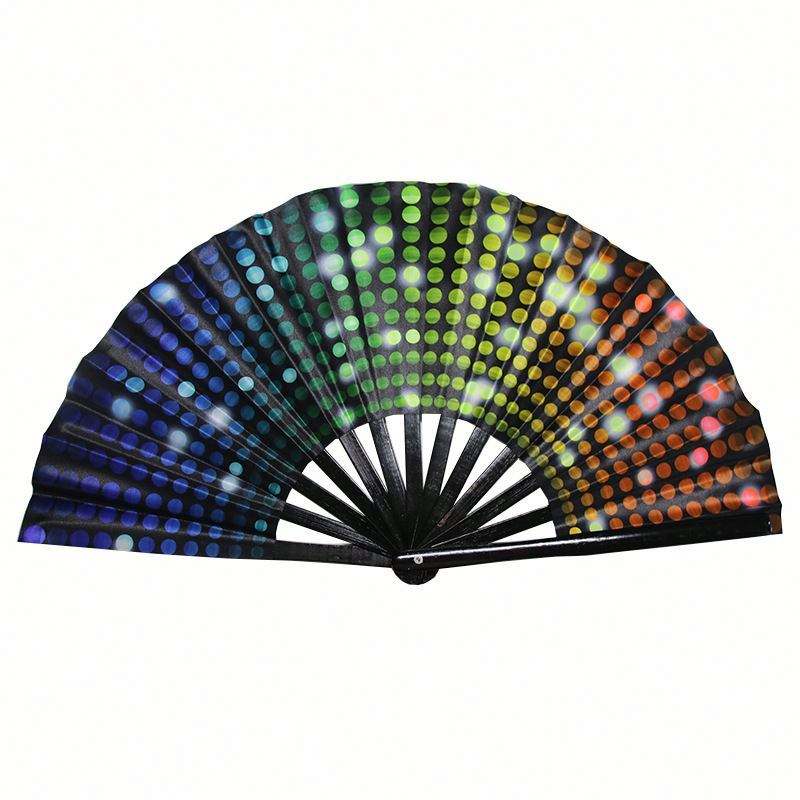 Abanicos Plegables de Bambú de 13 Pulgadas, Grandes, con Diseño Impreso para Fiestas, Bailes y Festivales, Estilo Tallado, Recuerdo