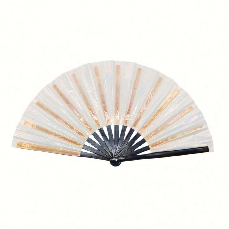 Abanico Plegable de PVC Multicolor de 13 Pulgadas con Varillas de Bambú para Festivales de Música y Decoraciones