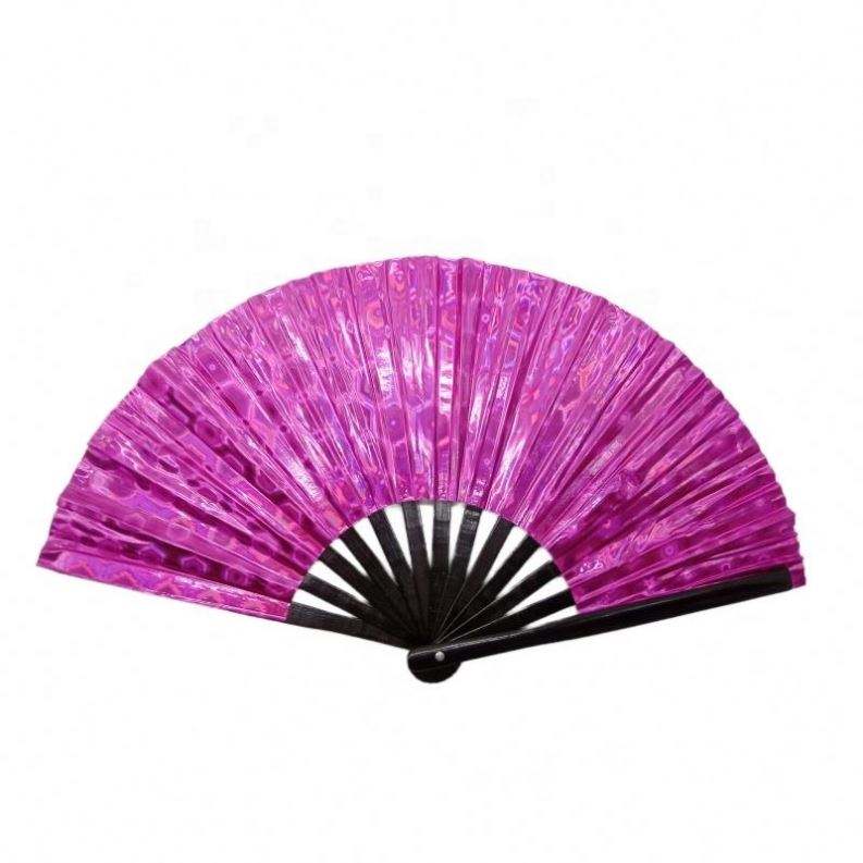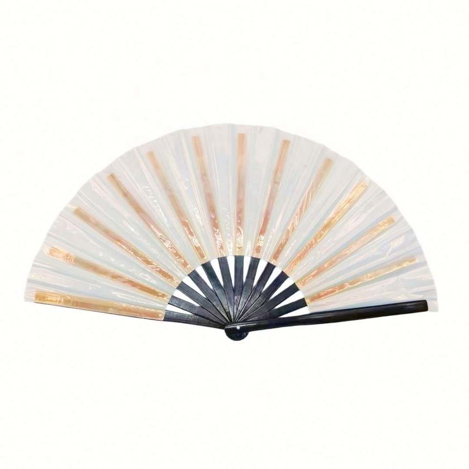 Abanico Plegable de PVC Multicolor de 13 Pulgadas con Varillas de Bambú para Festivales de Música y Decoraciones