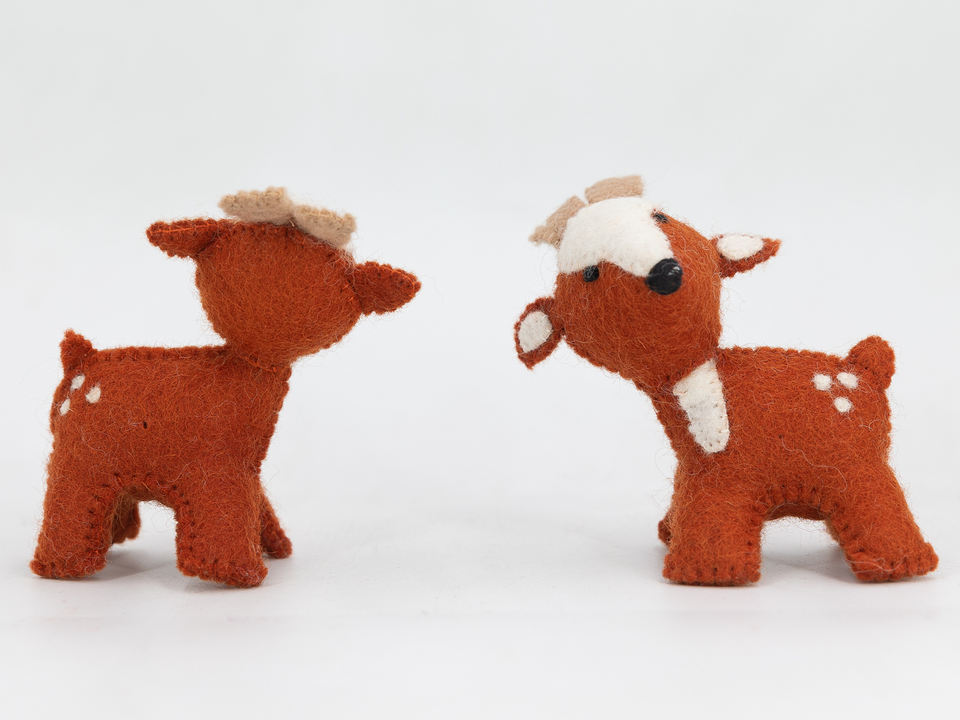 Reno de fieltro cosido de 13x8cm para adorno navideño fieltro puramente a mano por el artesano nepalí con lana NZ ecológica