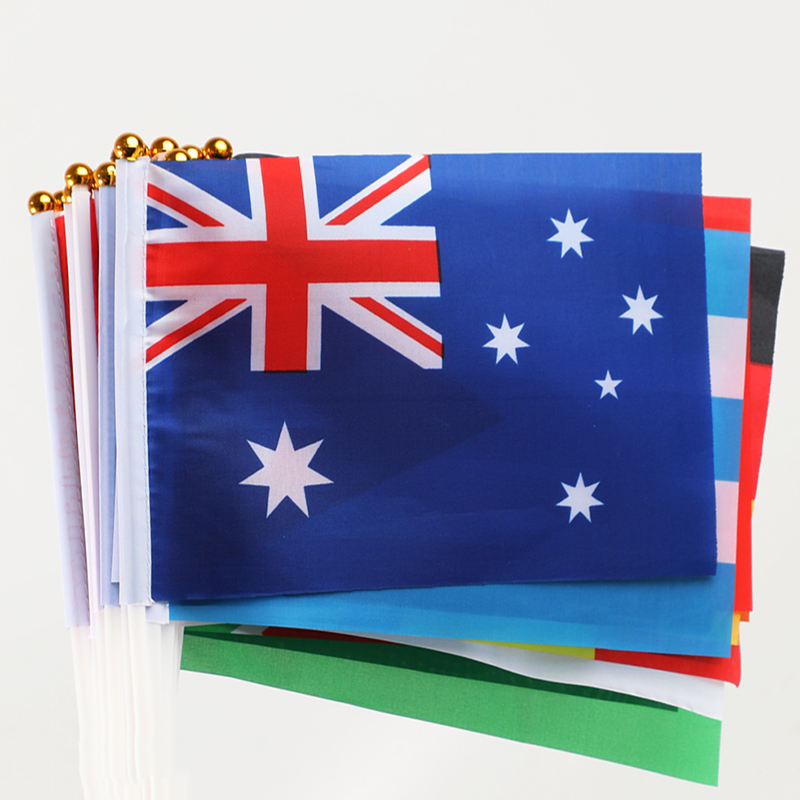 14*21 cm Todos los países Bandera de mano pequeña Mini 5,5*8 pulgadas Bandera americana con poste de plástico