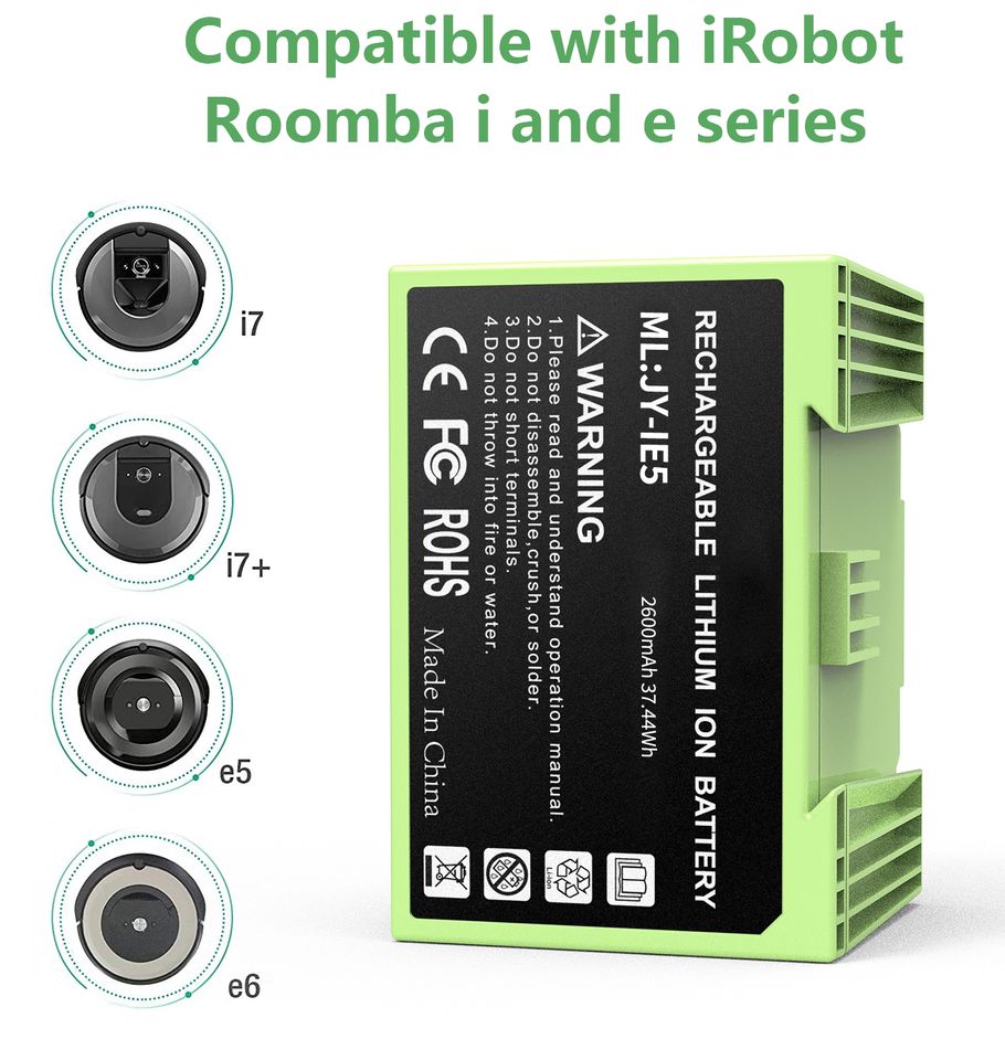 Batería de repuesto de iones de litio de 14,4 V y 2600mAh para aspiradora Roomba E5 E6 i7 i7 + Series