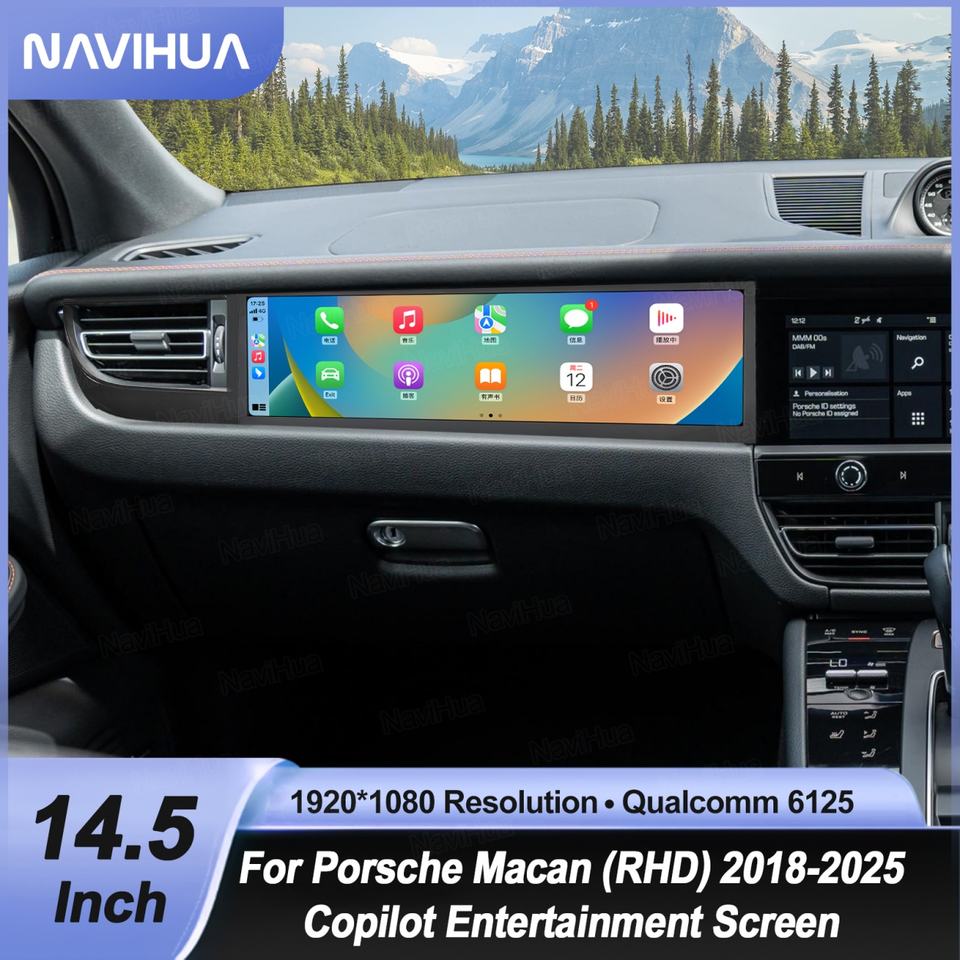 Pantalla Táctil Android de 14.5 Pulgadas para Coche, Sistema de Entretenimiento para Copiloto, Compatible con Porsche Macan RHD 2018-2025, Monitor de Unidad Principal para Pasajeros, Carplay