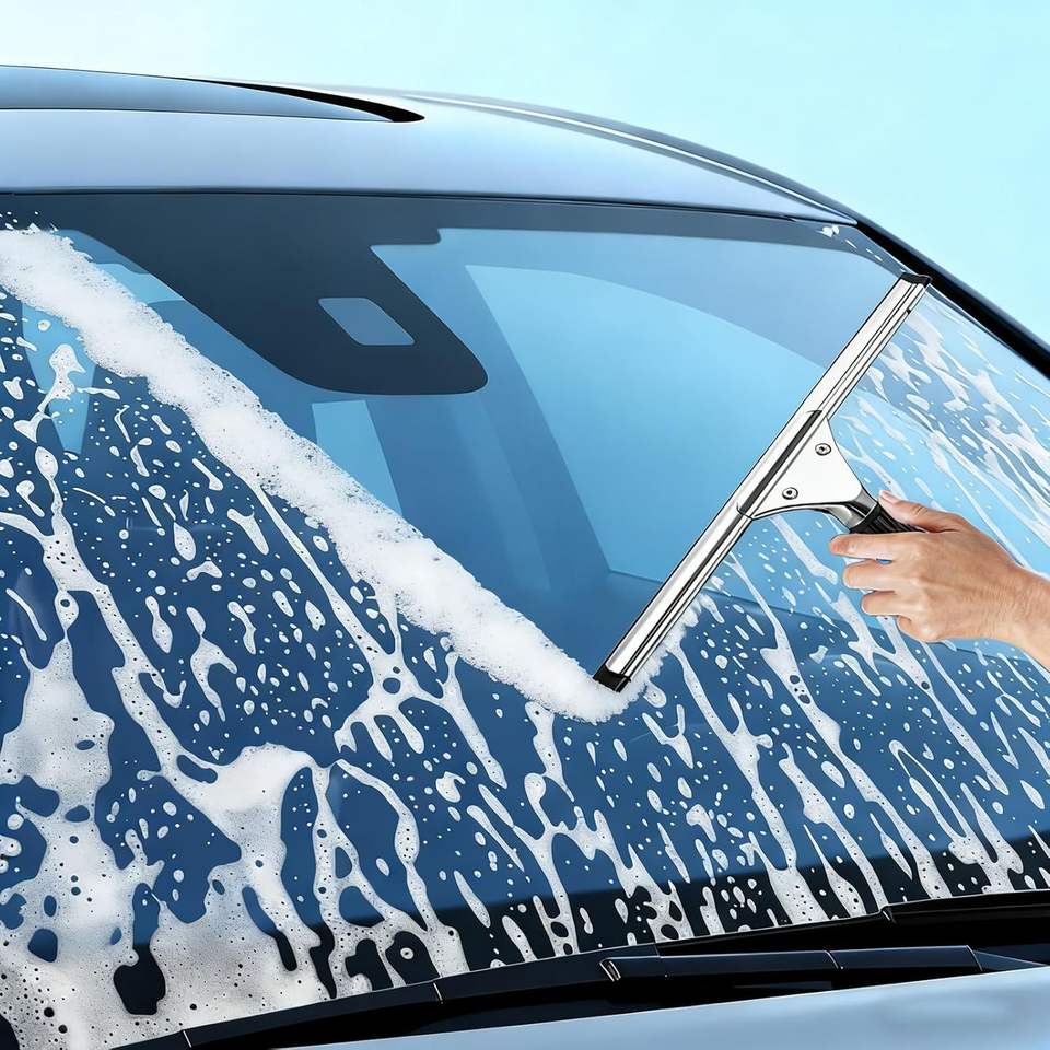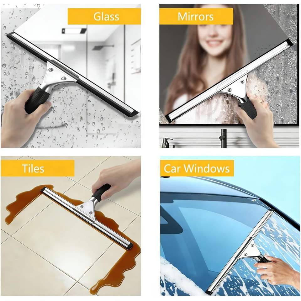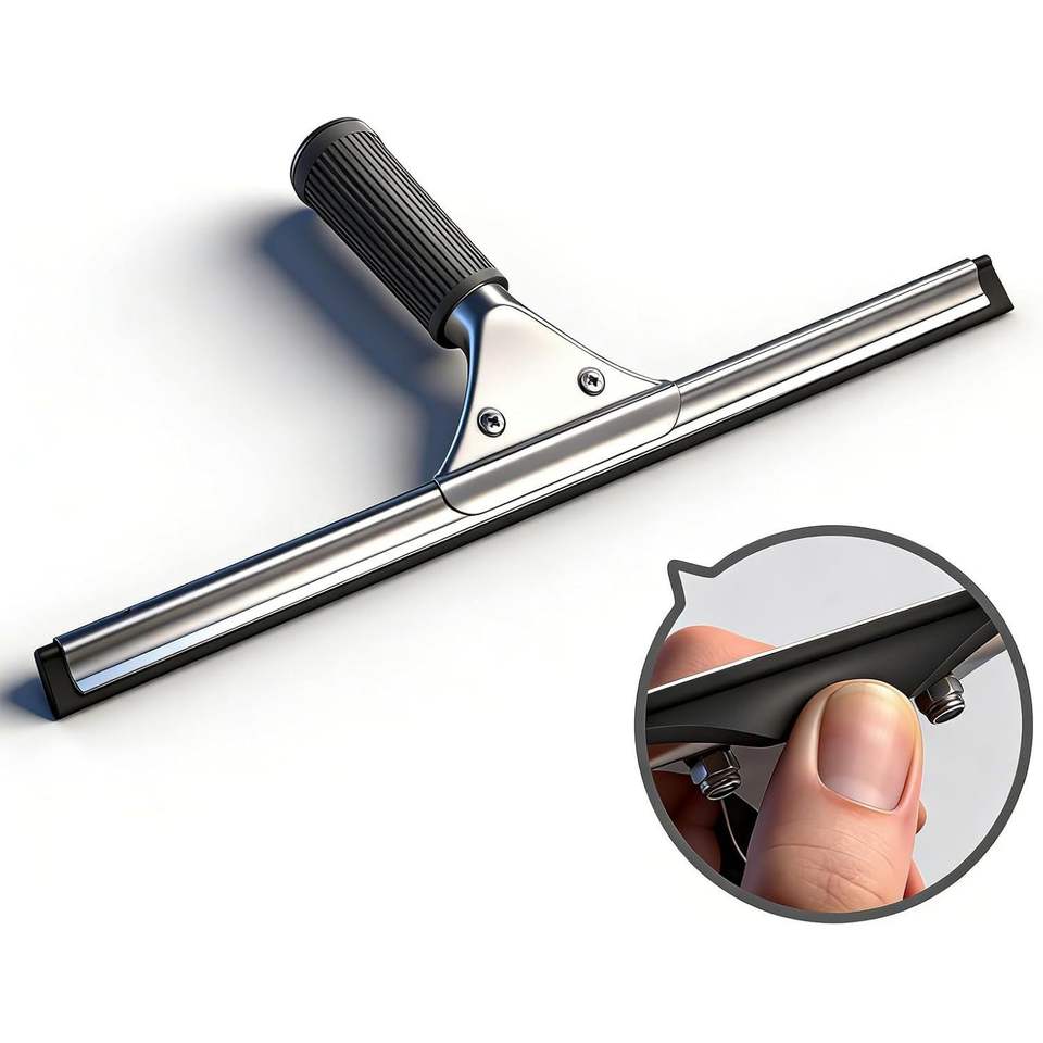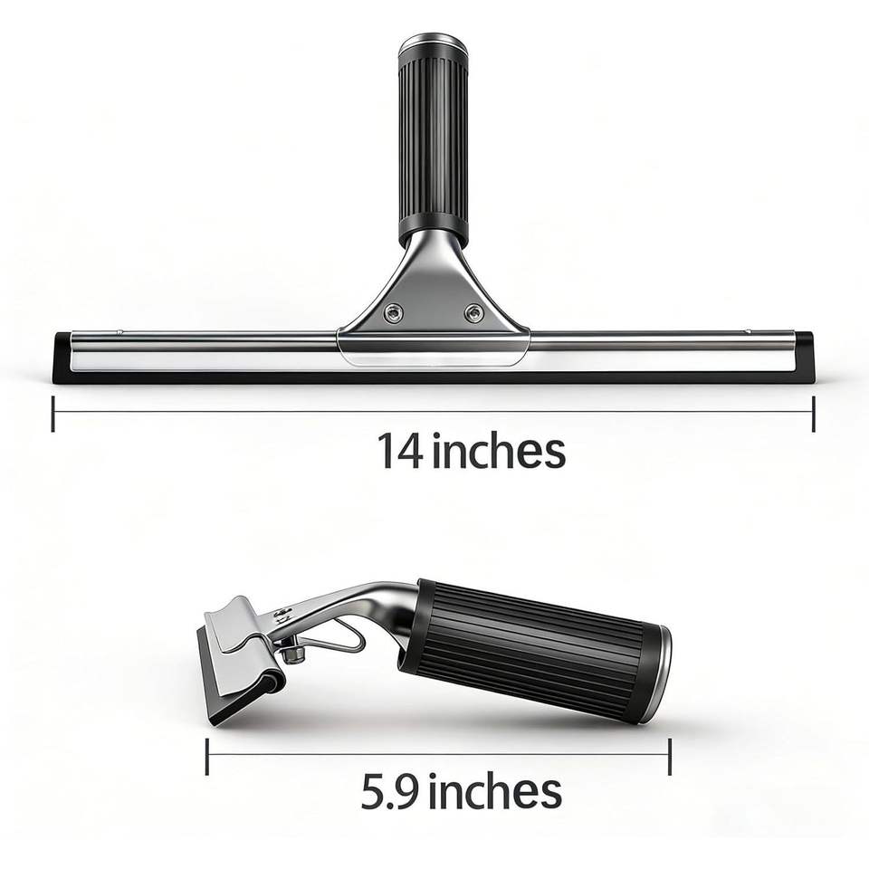 Espátula Profesional de Acero Inoxidable de 14 Pulgadas para Limpieza de Vidrios de Ducha y Ventanas, Mango Duradero con Función Anti-Rayas