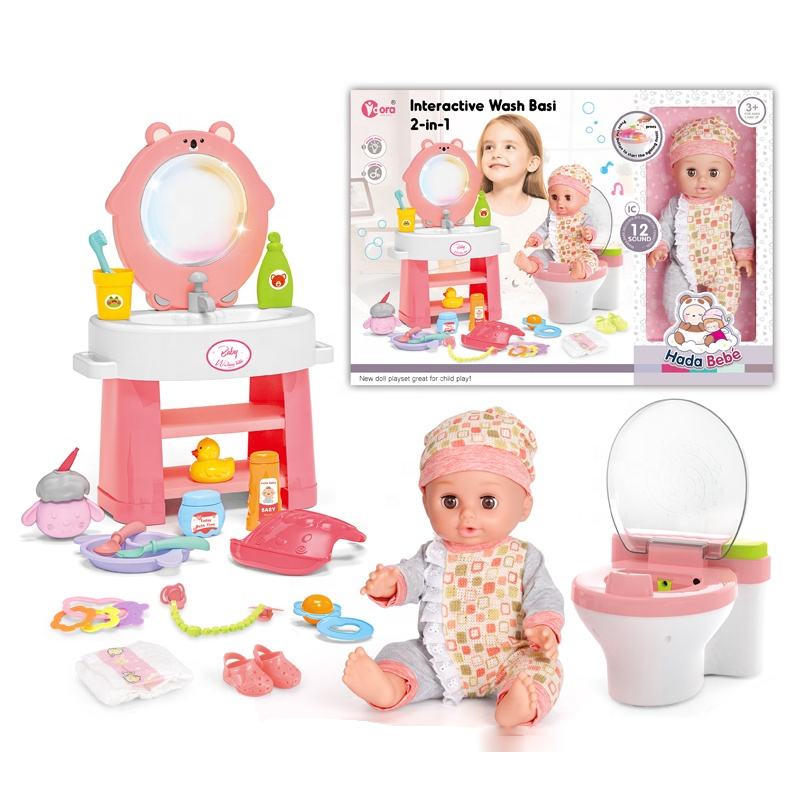 Juguete de bebé para orinar, muñeca de juguete suave, juego de cuidado de inodoro acústico-óptico