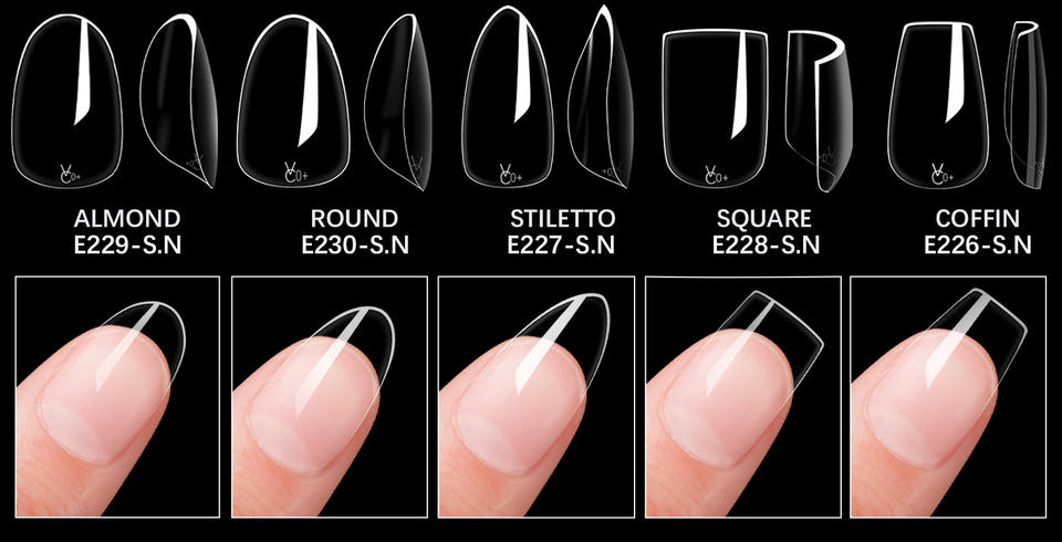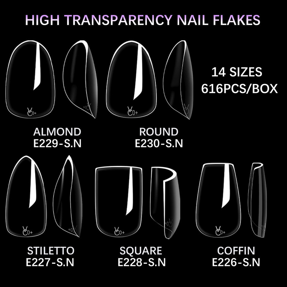 Kit de uñas a presión sin costuras de alta transparencia de 14 tamaños-Puntas de uñas de longitud media y corta