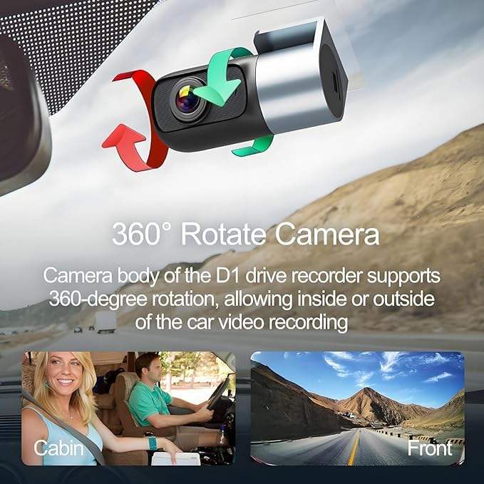 Rotación de 360 grados: La función de rotación de 360 grados permite una posición versátil, permitiendo la grabación dentro o fuera del vehículo según sea necesario.