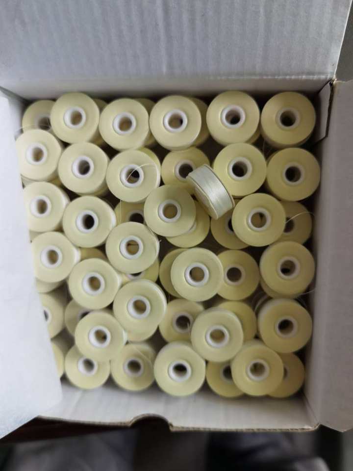 Product Name:144pcs Size Style L M G 70D/2 Paper Side White Prewound Bobbin Thread