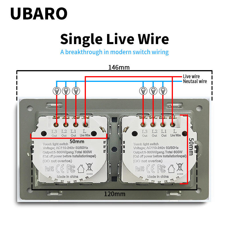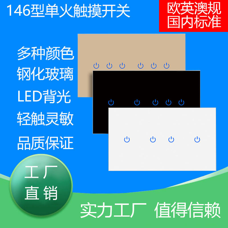 Interruptor táctil de un solo cable tipo 146, 8 vías, panel de vidrio templado con retroiluminación LED para instalación en pared