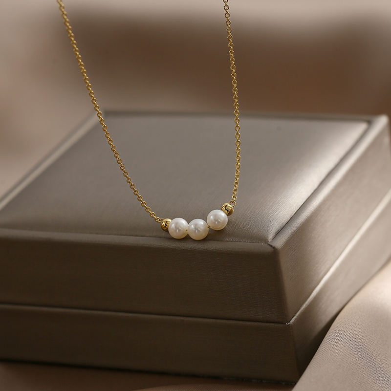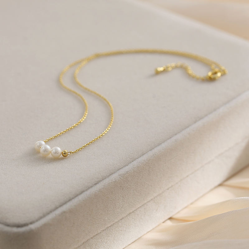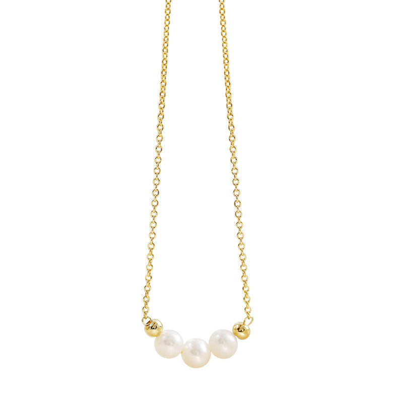 Collar de Perlas de Agua Dulce 1474 con Cadena de Plata y Baño de Oro de 18K