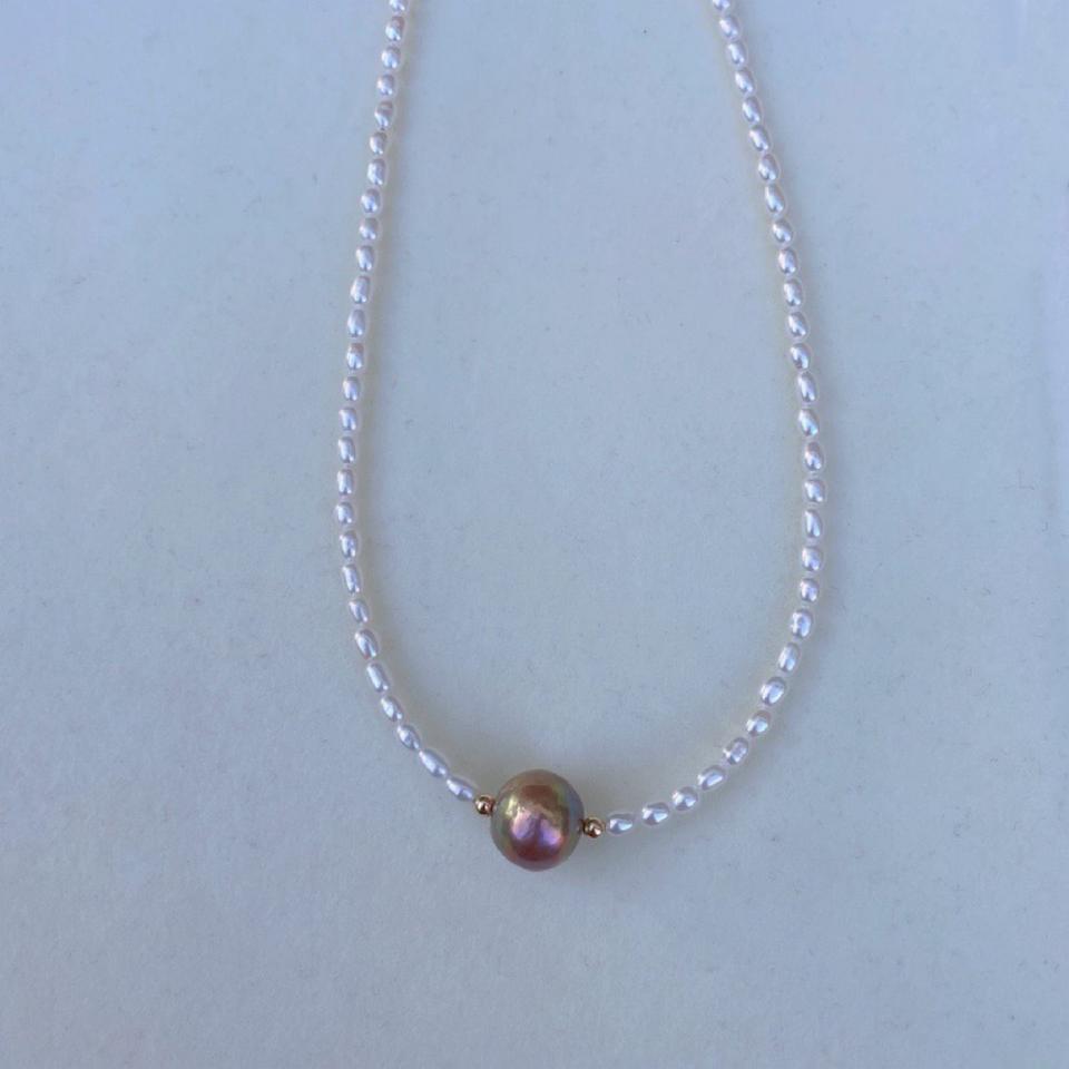 Collar Barroco de Oro de 14K para Mujer, Deslumbrante Perla Natural Grande Plegada de Color Púrpura, Cadena para Clavícula, Diseño Único Arrugado