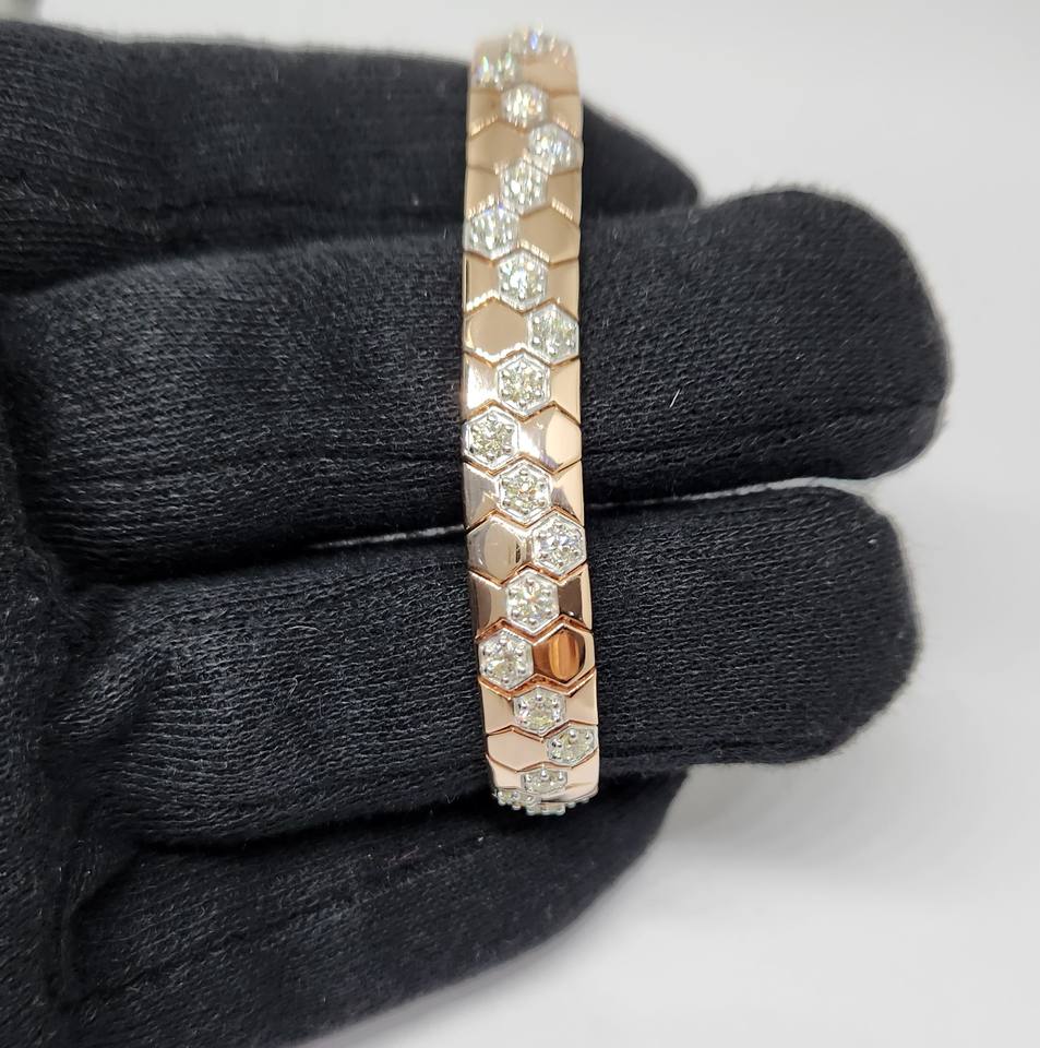 Pulsera de tenis con patrón de panal de oro de 14 quilates para hombres y mujeres Joyería fina certificada IGI con diamantes naturales FG VS