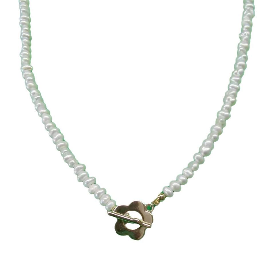 Collar de Perlas de Agua Dulce Barrocas con Hebilla de Flor de Ciruelo con Incrustaciones de Oro de 14K, Cadena de Clavícula con Flores Pequeñas, Estilo Ins, Temperamento