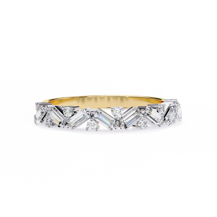 Anillo de oro de 14 quilates, Diamante cultivado en laboratorio, banda de eternidad, Baguette y corte redondo, joyería fina para aniversario de bodas