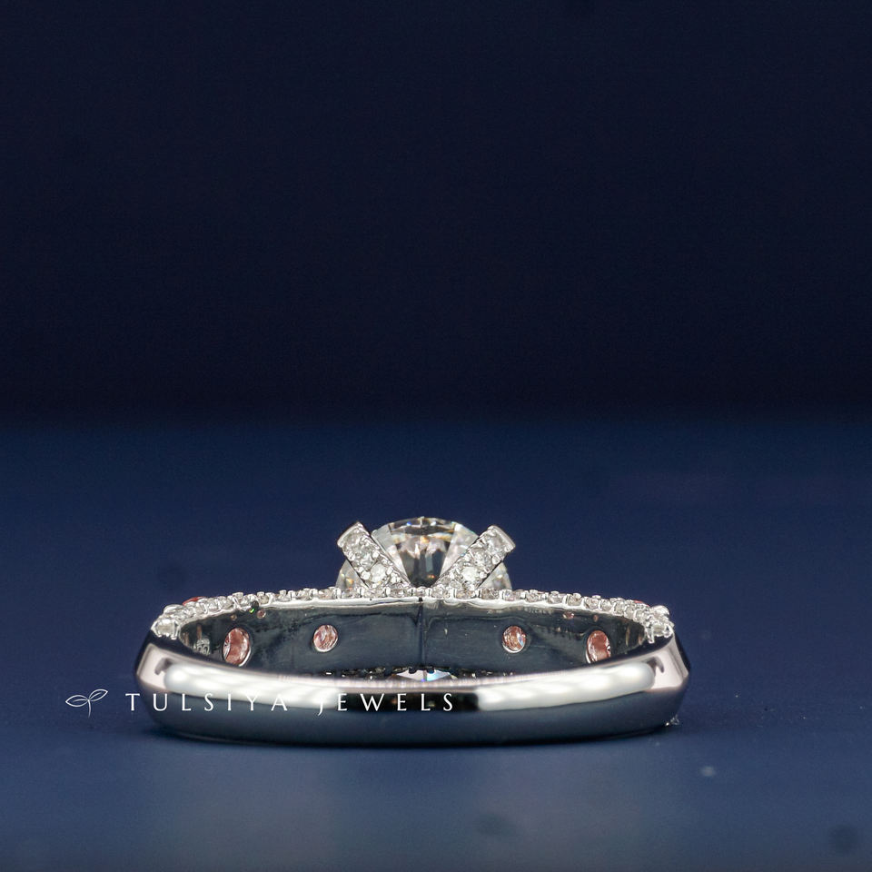 Anillo de Diamante Cultivado en Laboratorio de Oro de 14K para Mujer, Anillo de Diamante Sintético de Alta Gama, Elegante Anillo de Boda con Banda Ancha