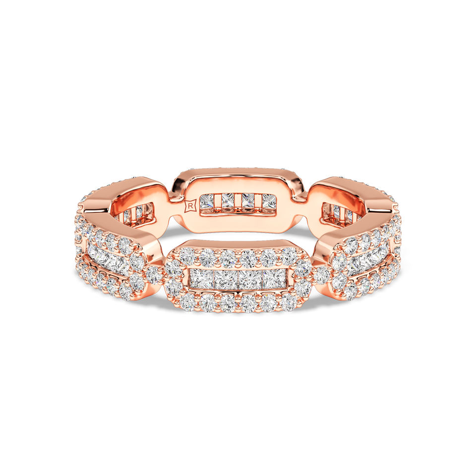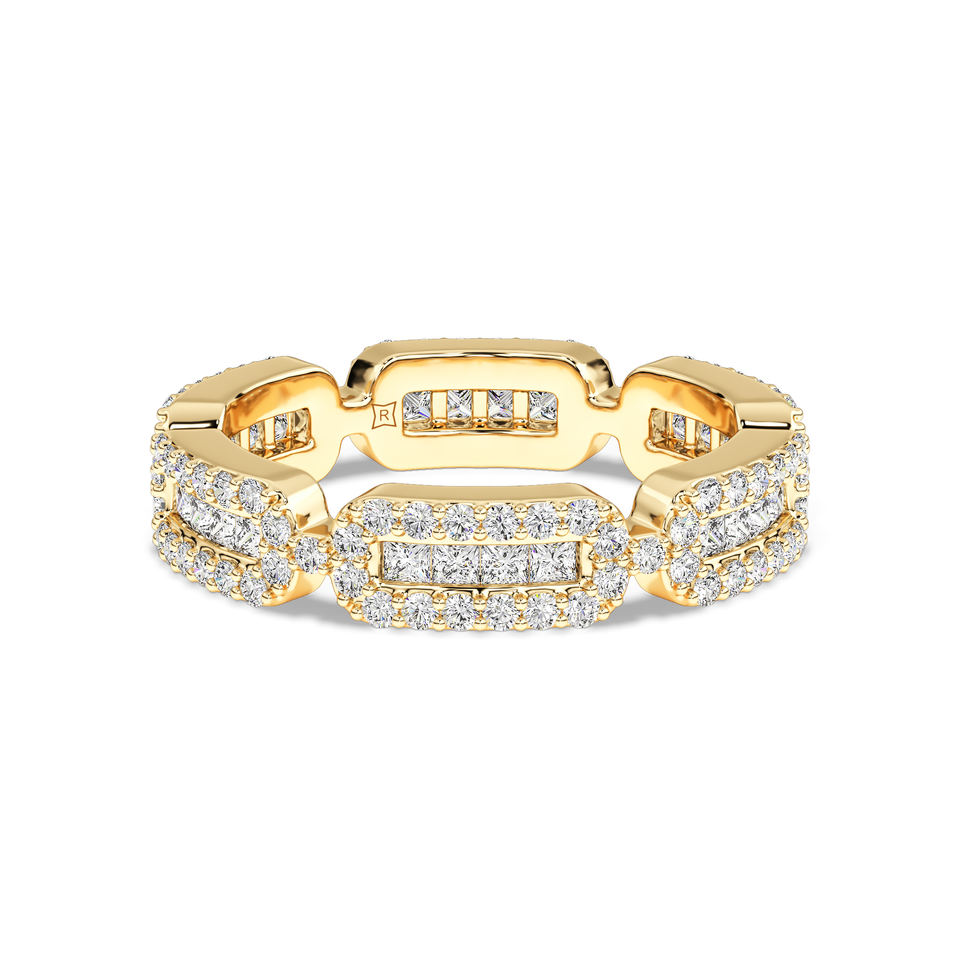 Anillo Ancho de Oro de 14K con Diamantes Cultivados en Laboratorio, Diseño con Múltiples Piedras, Joyería para Mujer, Disponible en Oro de 10K, 14K y 18K, Platino
