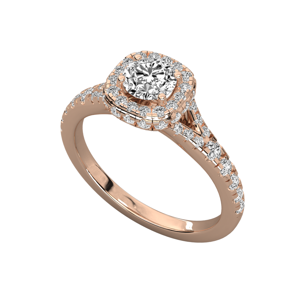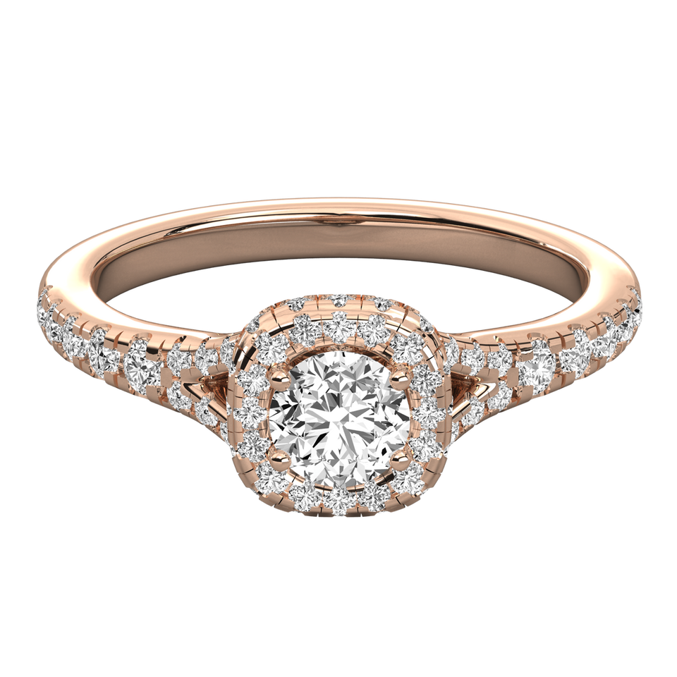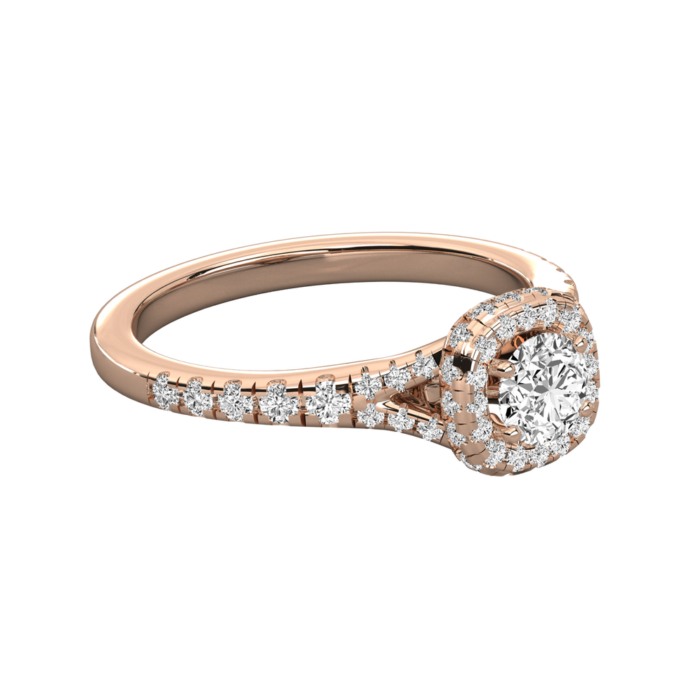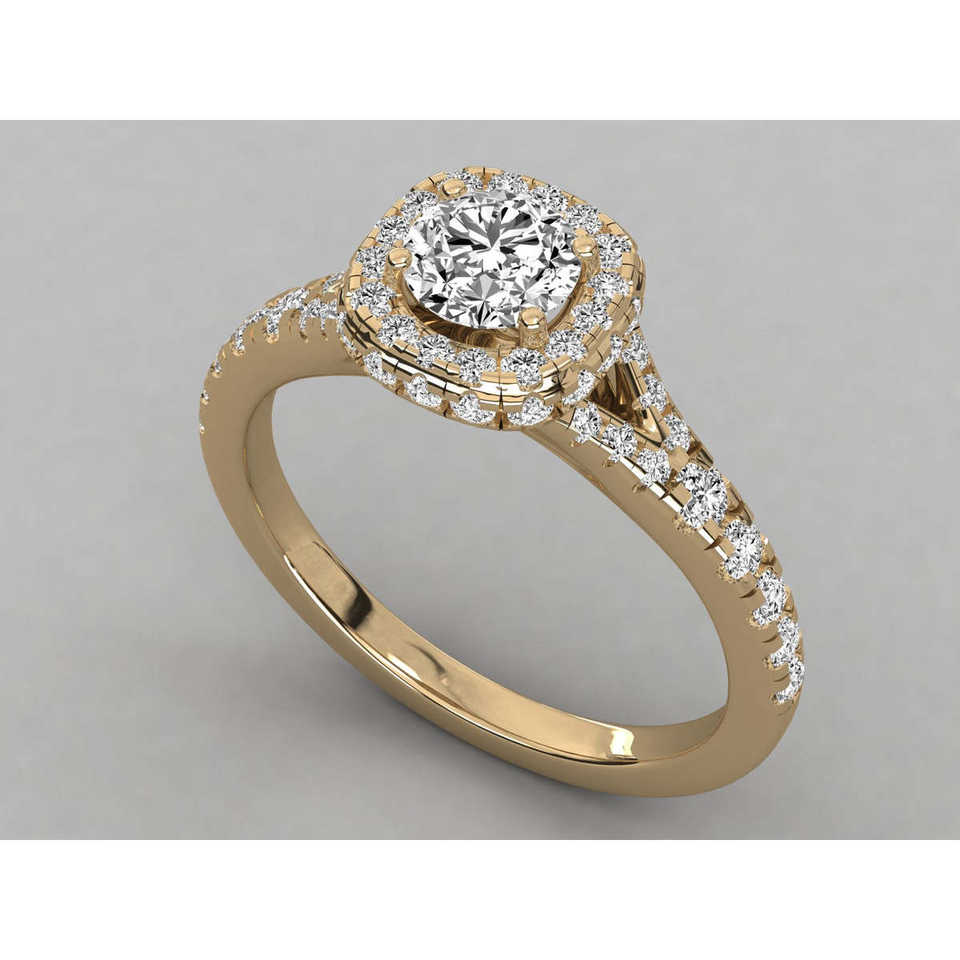 Anillo de Compromiso de Diamante Redondo Solitario Cultivado en Laboratorio de Oro de 14K para Mujer