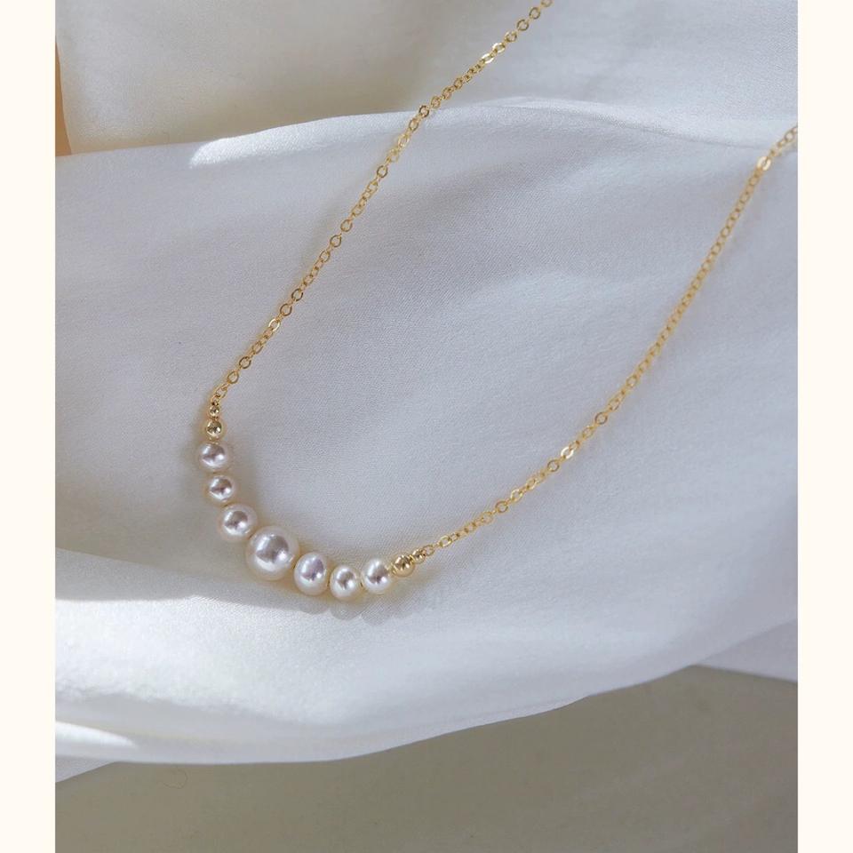 Collar de Perlas de Agua Dulce Naturales Chapado en Oro de 14K, Cadena de Clavícula con Diseño de Media Luna, Estilo Simple y Elegante