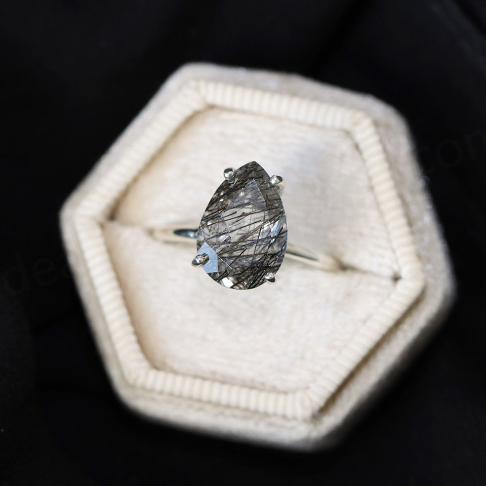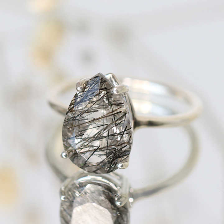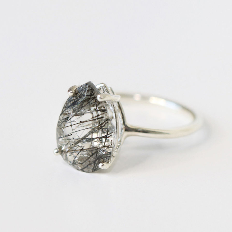 Tourmalinated Quartz Ring:Tourmalinated Quartz Engagement Ring
