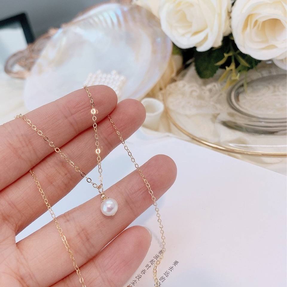 Collar Chapado en Oro de 14K con Perla Natural de Agua Dulce, Cadena de Clavícula con Forma de Bombilla Pequeña y Brillante para Mujer, Elegante