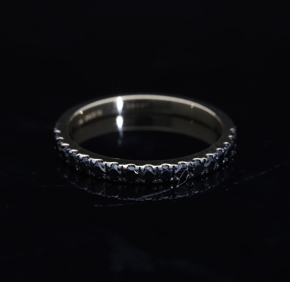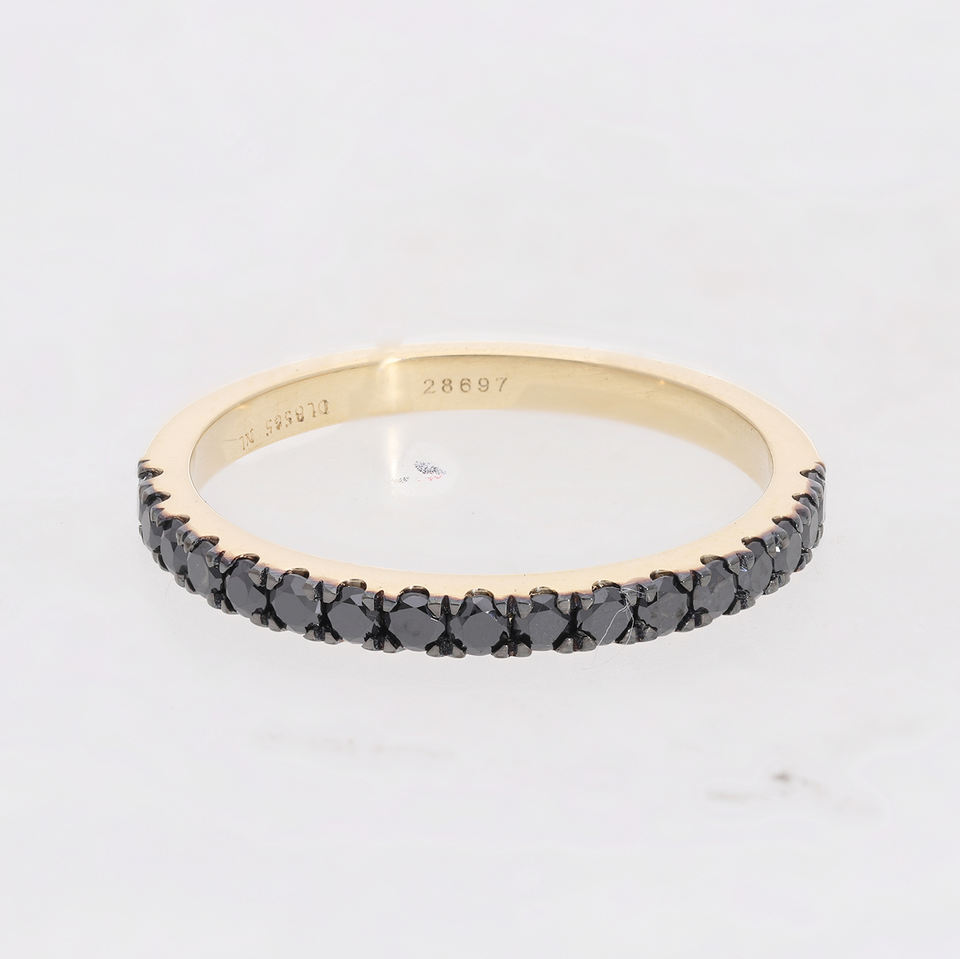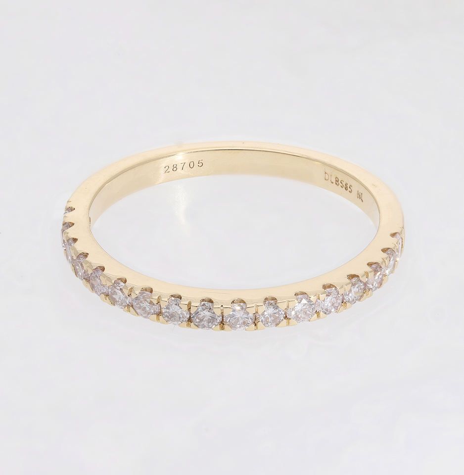 Banda de diamantes apilable de oro de 14 quilates con brillantes diamantes redondos naturales de 0,39 CTW en un ajuste de pavé delicado para una elegancia atemporal