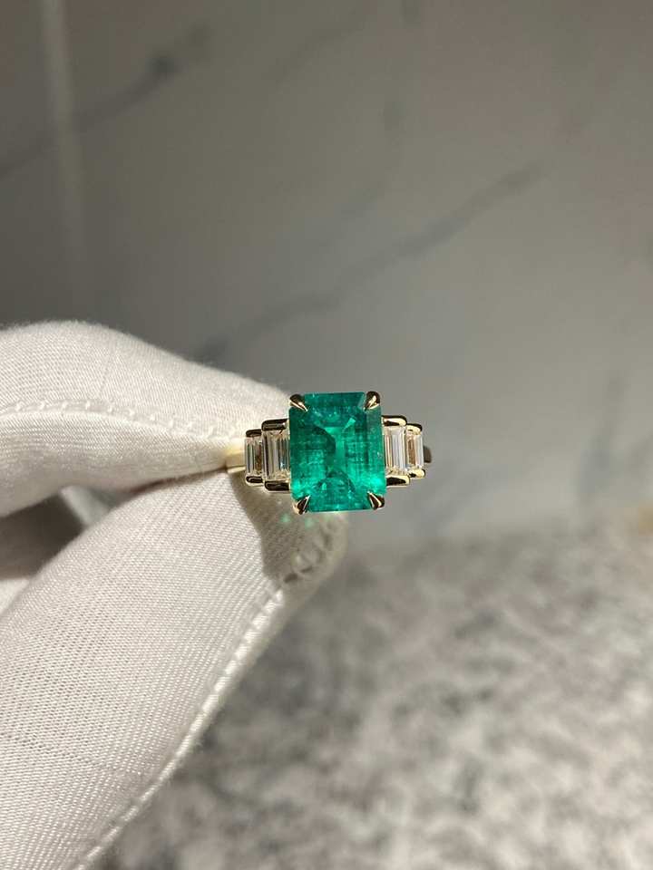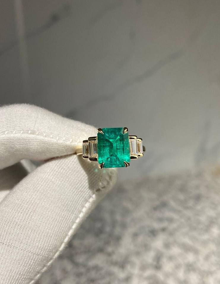 Palabra clave:Anillo Delicado de Diseño Famoso Mundialmente con Esmeralda de Zambia en Oro de 14K