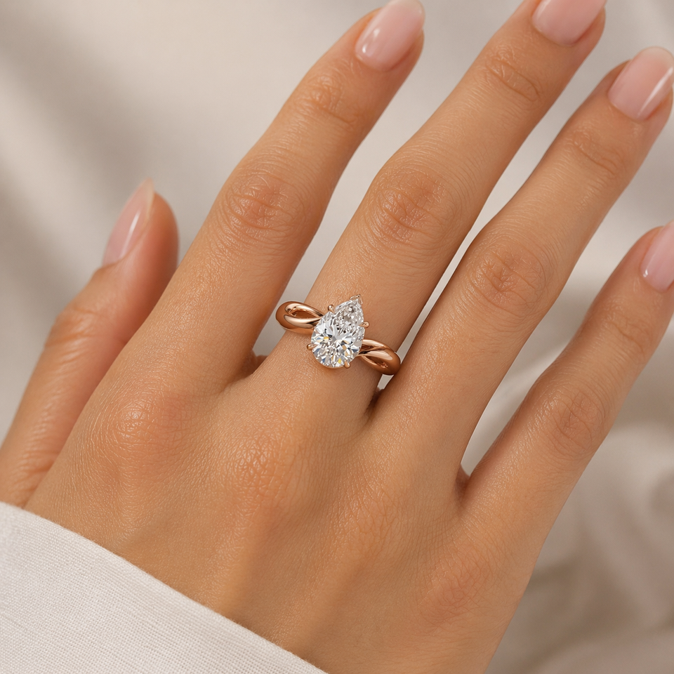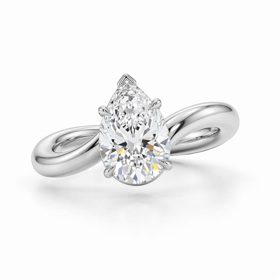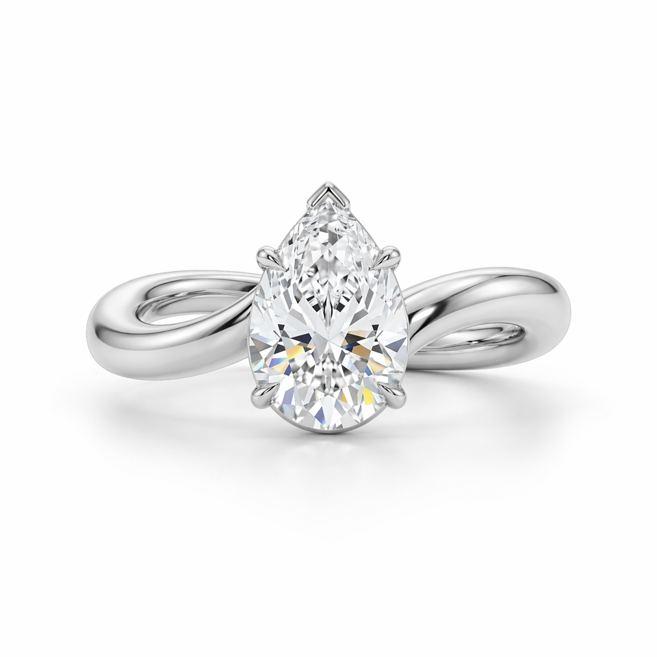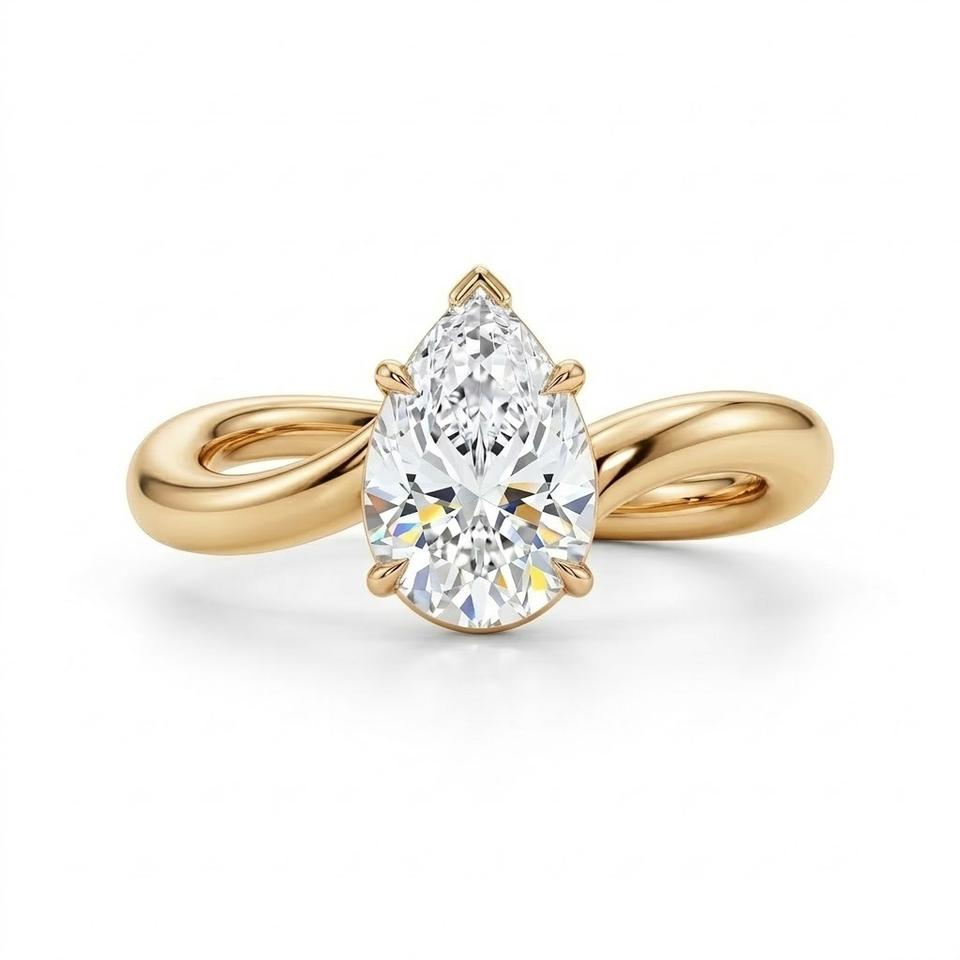 Anillo Solitario Bypass de Oro de 14K con Corte Pera