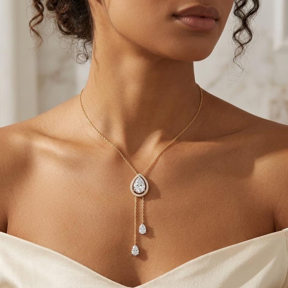 Collar de Oro Puro de 14K con Diamante Cultivado en Laboratorio de 1.45CT en Forma de Pera, con Halo y Cadena Colgante, Elegante Regalo para Novia