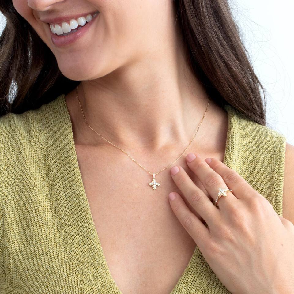 Nombre del producto:Collar con Colgante de Trébol de Cuatro Hojas de Oro Macizo de 14K con Diamantes