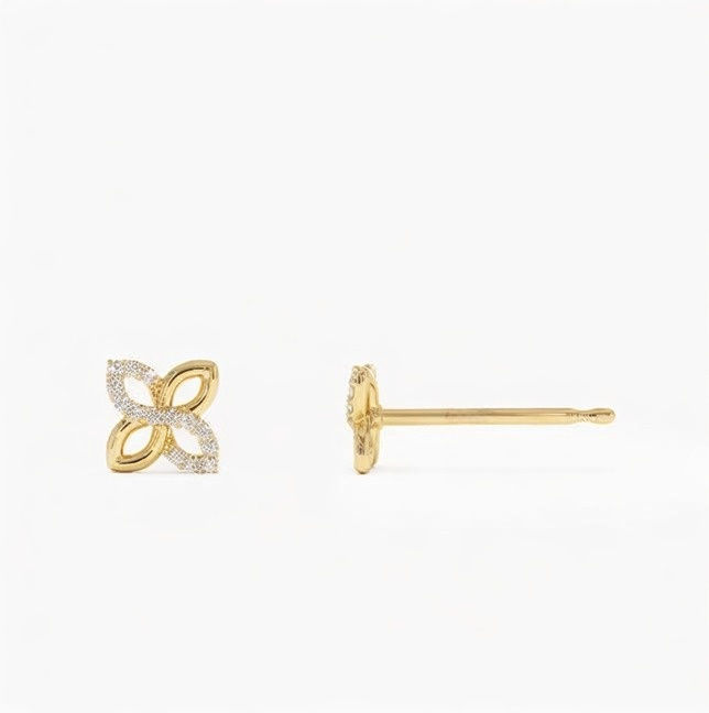 Nombre del producto:Aretes de oro macizo de 14 quilates con diseño floral de pétalos