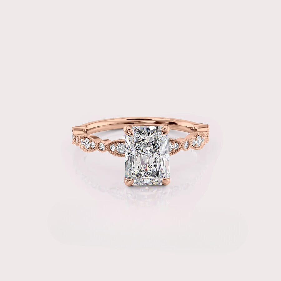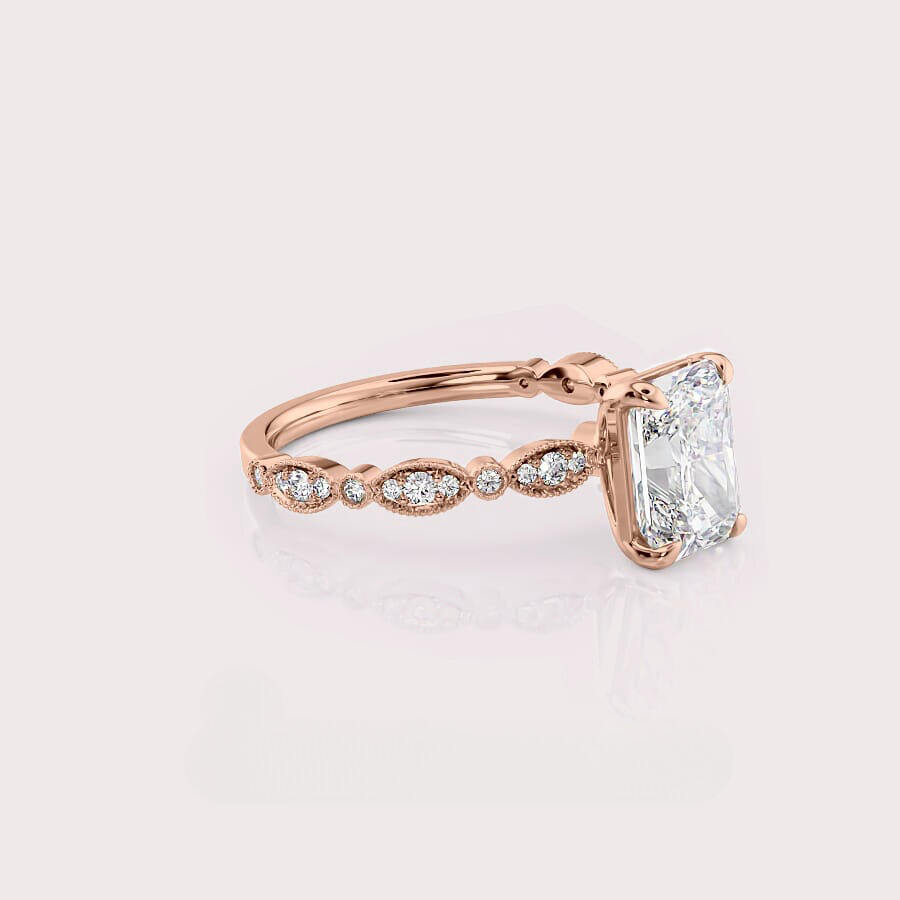 Anillo de Diamante Cultivado en Laboratorio con Corte Radiante en Oro Rosa de 14K con Detalles Laterales Vintage | Joyería de Compromiso Personalizada