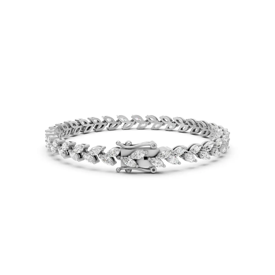 Pulsera de tenis con diseño de hoja y diamantes marquise cultivados en laboratorio, chapada en rodio y oro rosa de 14K, elegante joyería fina con certificación IGI, a la moda
