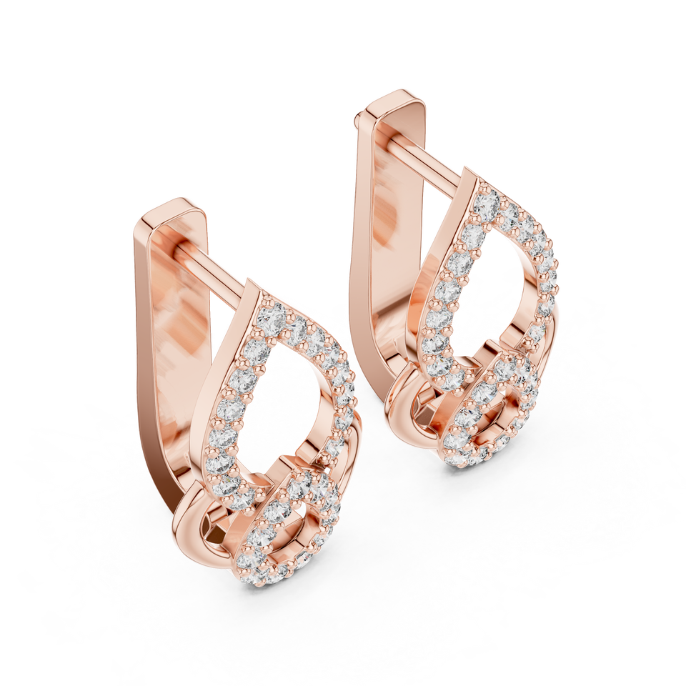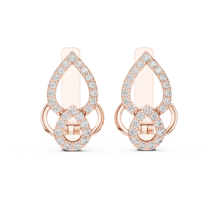 Pendientes de Oro Rosa de 14K con Diamante Cultivado en Laboratorio de Corte Redondo en Forma de Lágrima con Halo, Menos de 1 Quilate, Lujosos para Mujer