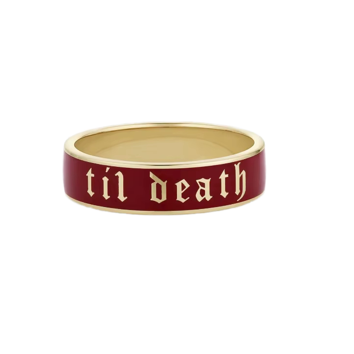 Anillo de Compromiso Clásico Apilable de Plata con Esmalte 'Cherry Mocha' en Oro Sólido de 14K, Regalo de Aniversario, Anillo de Promesa