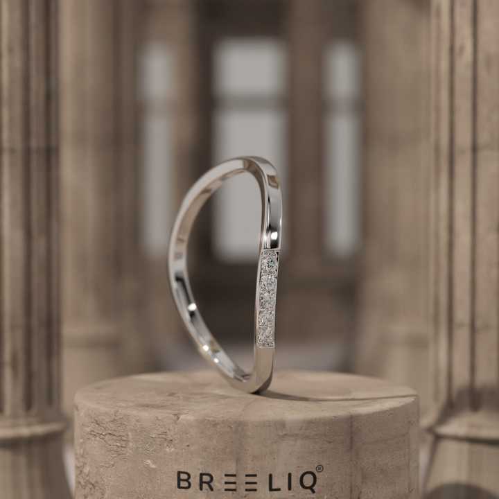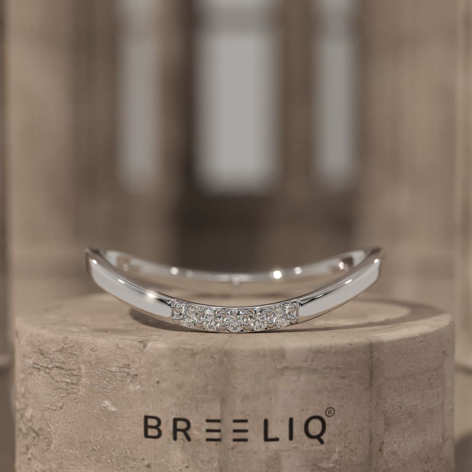 Anillo de Oro Sólido de 14K con Diamante Cultivado en Laboratorio, Curvo, Minimalista, Apilable, para Mujer