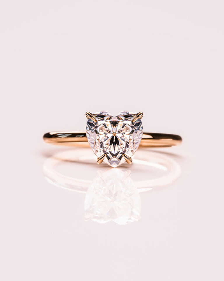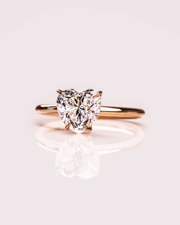 Anillo de compromiso de oro macizo de 14K con diamante solitario de corte corazón cultivado en laboratorio, hecho a medida con engaste de puntas, anillo solitario para amantes, para mujer