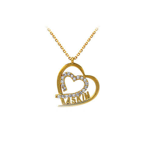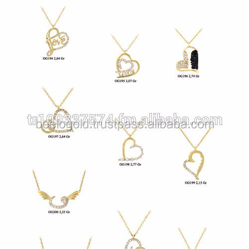 Collar con abalorio en forma de corazón de oro macizo de 14 quilates, joyería fina para mujer, hecho en Turquía