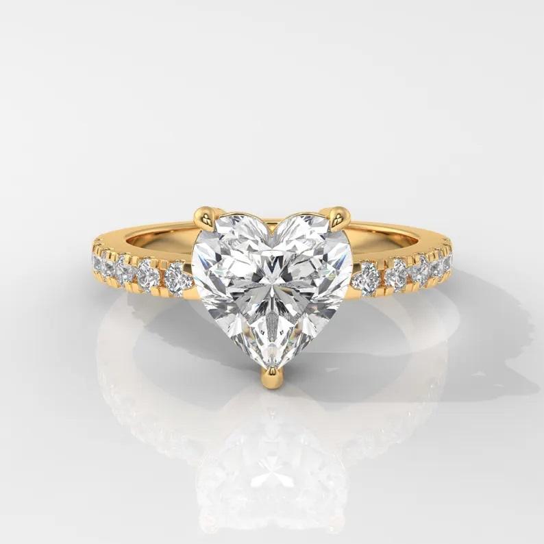 Anillo de Oro Sólido de 14K con Forma de Corazón y Diamante, Anillo de Compromiso de Lujo, Regalo de Joyería para Mujer