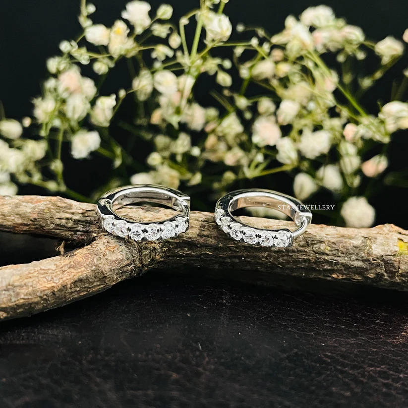 Pendientes de Aro Huggie Cristianos de Oro Sólido de 14K con Diamantes Naturales, Joyería Fina, Regalo de Lujo