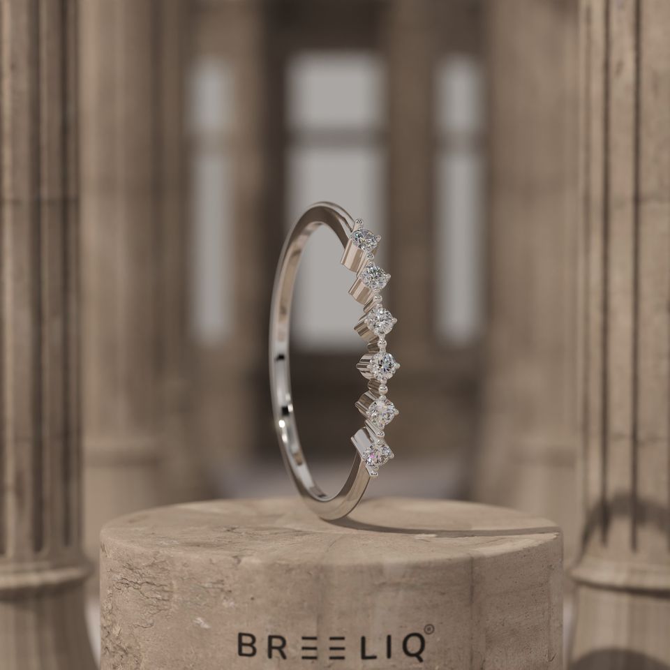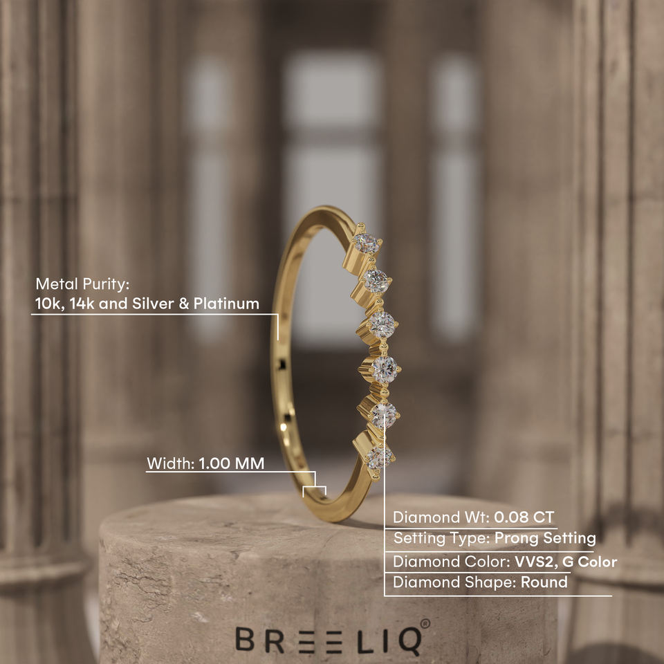 Anillo de Oro Sólido de 14K con Diamantes Cultivados en Laboratorio, Estilo Corona Moderna, Banda de Diamantes Minimalista, Anillo de Boda Apilable