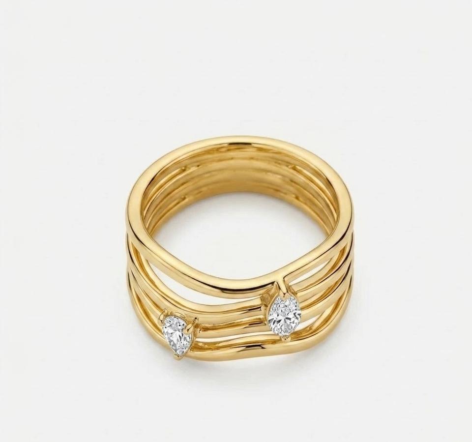 Anillo de Oro de 14K con Diamantes en Diseño de Ondas Múltiples