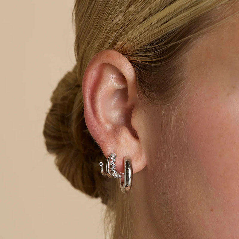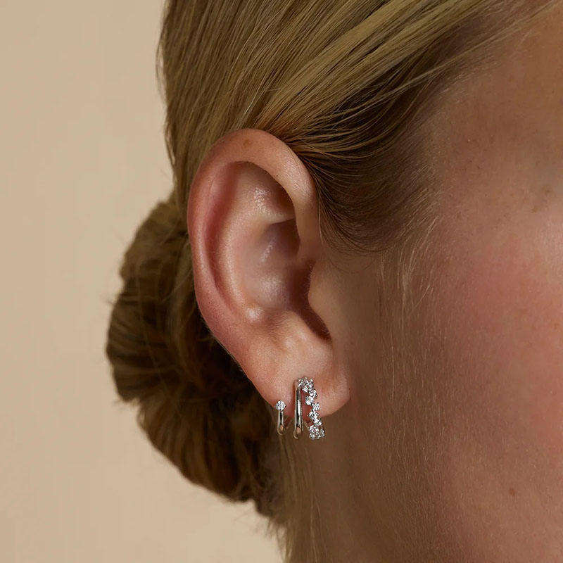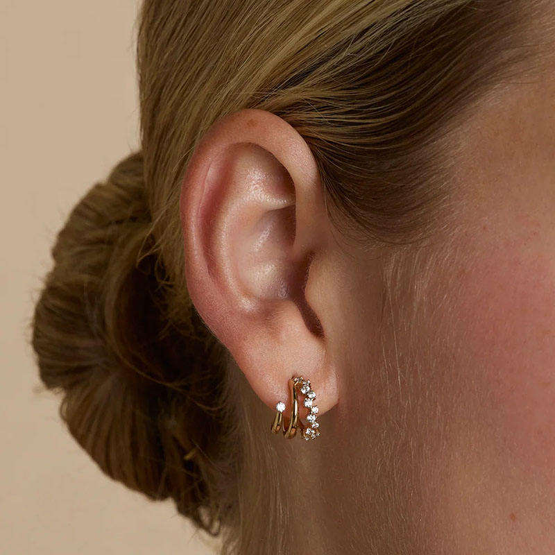 Pendientes de aro Huggie de oro macizo de 14K con diamantes cultivados en laboratorio de triple fila para mujer, aretes delicados tipo J-Hoop apilados con múltiples bandas