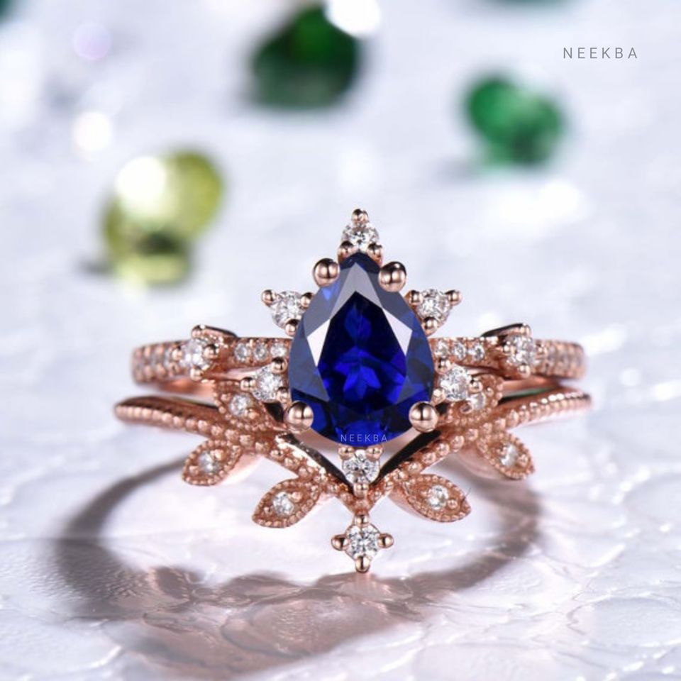 Conjunto de anillo de boda de zafiro azulTipo de anillos