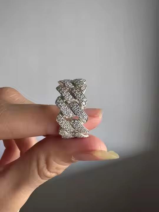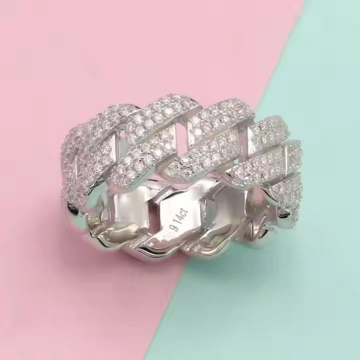 Anillo de bodas de oro blanco macizo de 14K, anillo de enlace cubano de Mónaco de diamante de moissanita Original de 10mm en plata y chapado en rodio para mujer