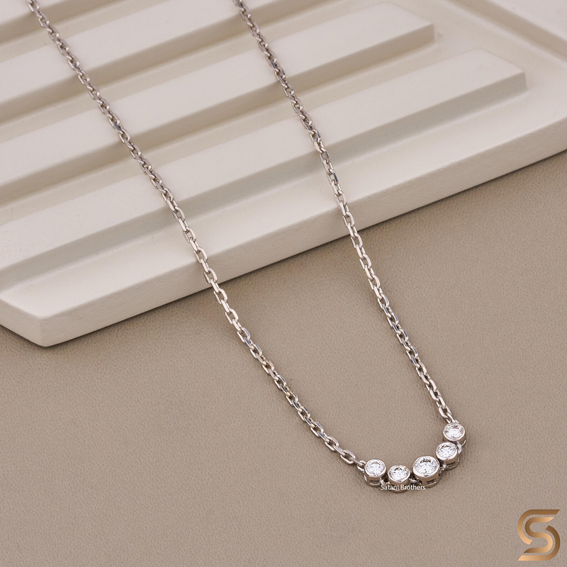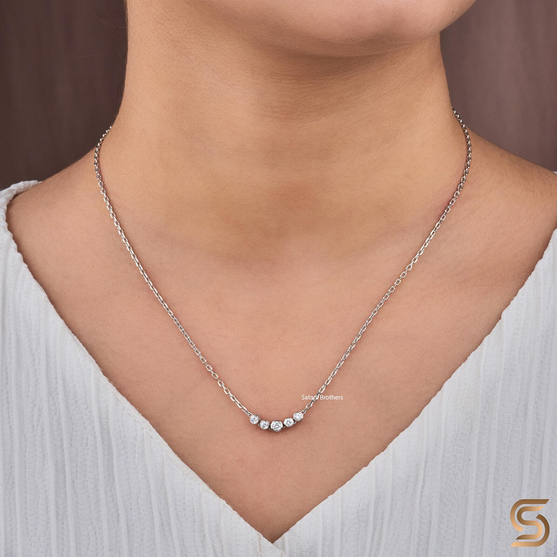 Collar de Oro Blanco Sólido de 14K con Diamante Cultivado en Laboratorio | Collar de cadena con 5 diamantes engastados en bisel | Collar Delicado para Uso Diario