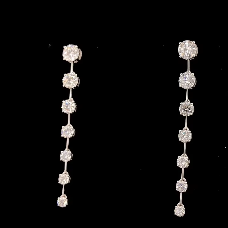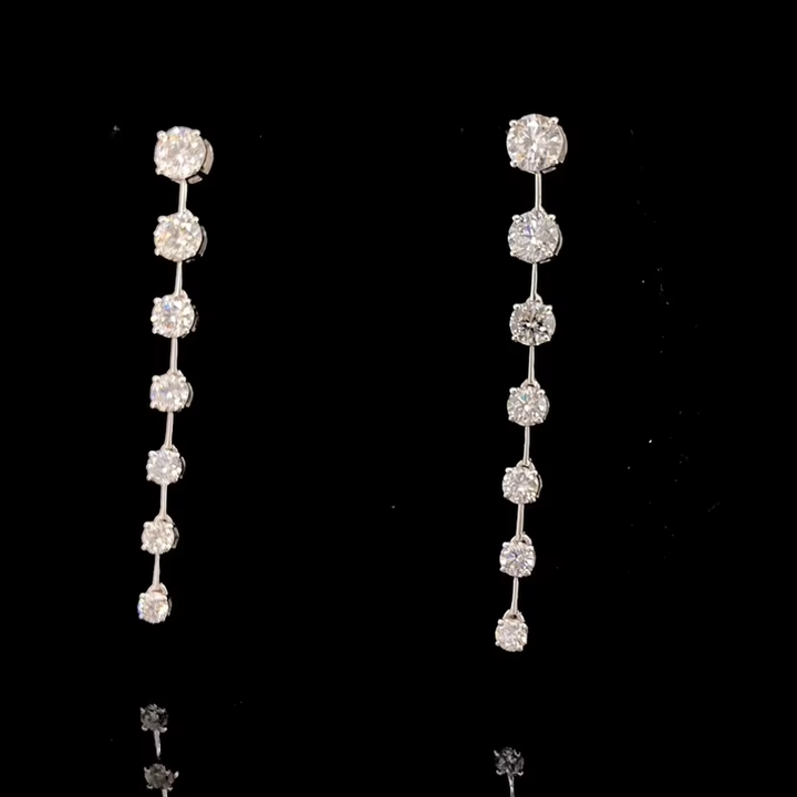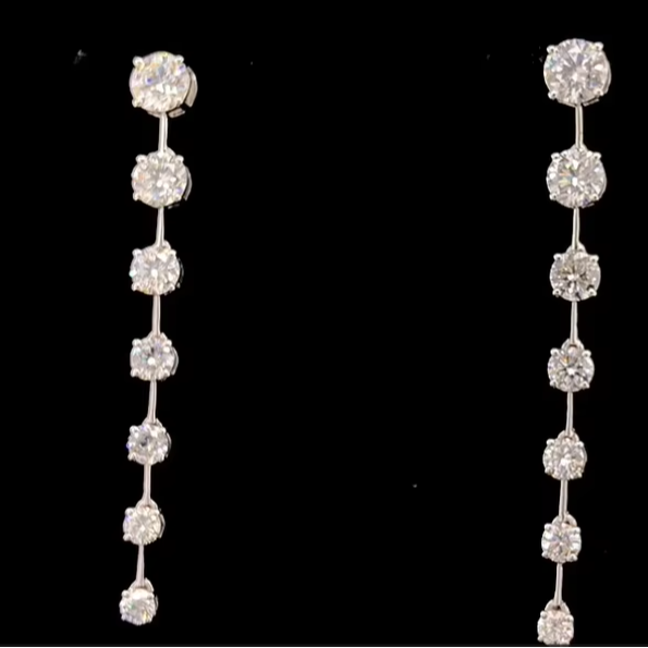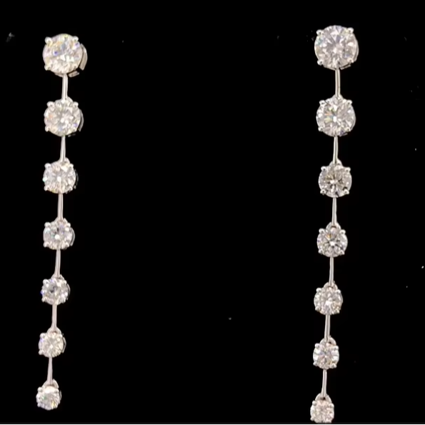 Pendientes Largos de Oro Amarillo Sólido de 14K con Diamante Cultivado en Laboratorio de Corte Redondo, Joyería Fina para Bodas y Fiestas