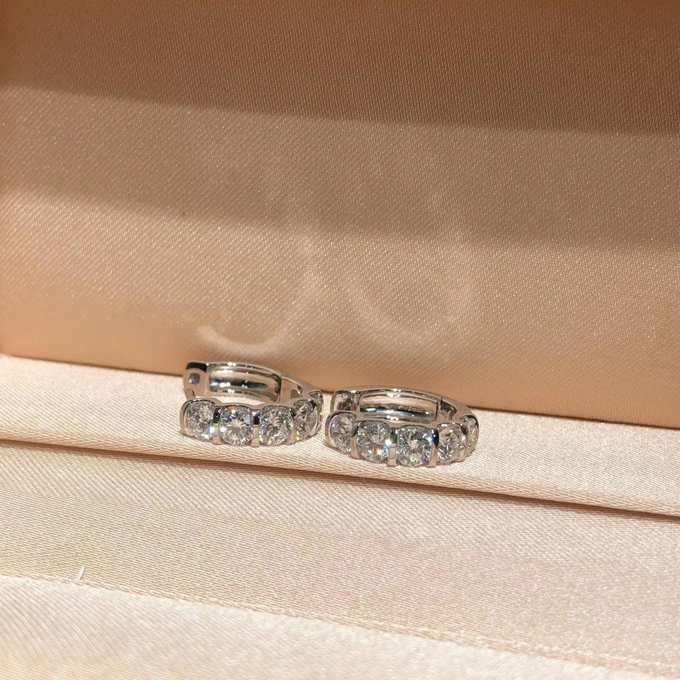 Pendientes de Aro de Oro Blanco de 14K con Diamantes Cultivados en Laboratorio Color F, Engaste de Media Bisel, Aros Delicados con Diamantes para Mujer, Joyería para Uso Diario
