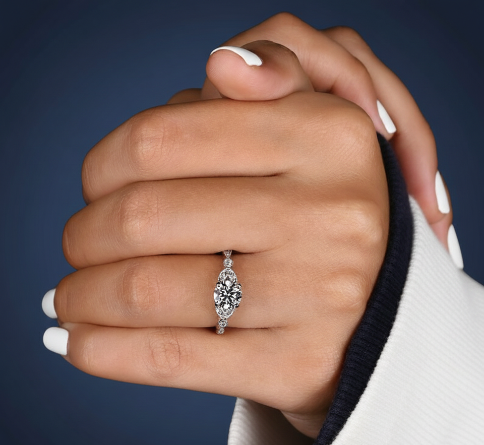Nombre del producto:Anillo de compromiso con diamante de laboratorio de talla redonda